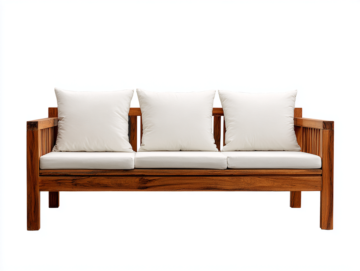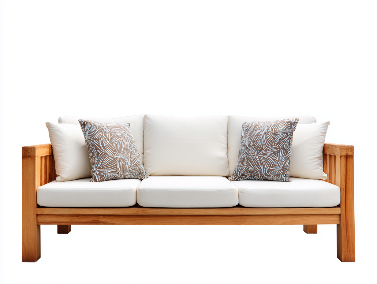 Outdoor Sofa solid wood frame with cushions 210x80x75 cm - natural white - outdoor garden seating design
