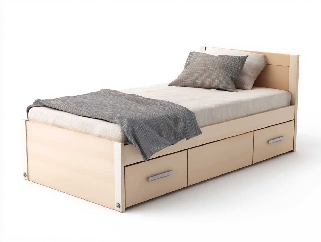 Single Bed wooden frame storage drawers 200x100x90 cm - natural - functional bedroom design