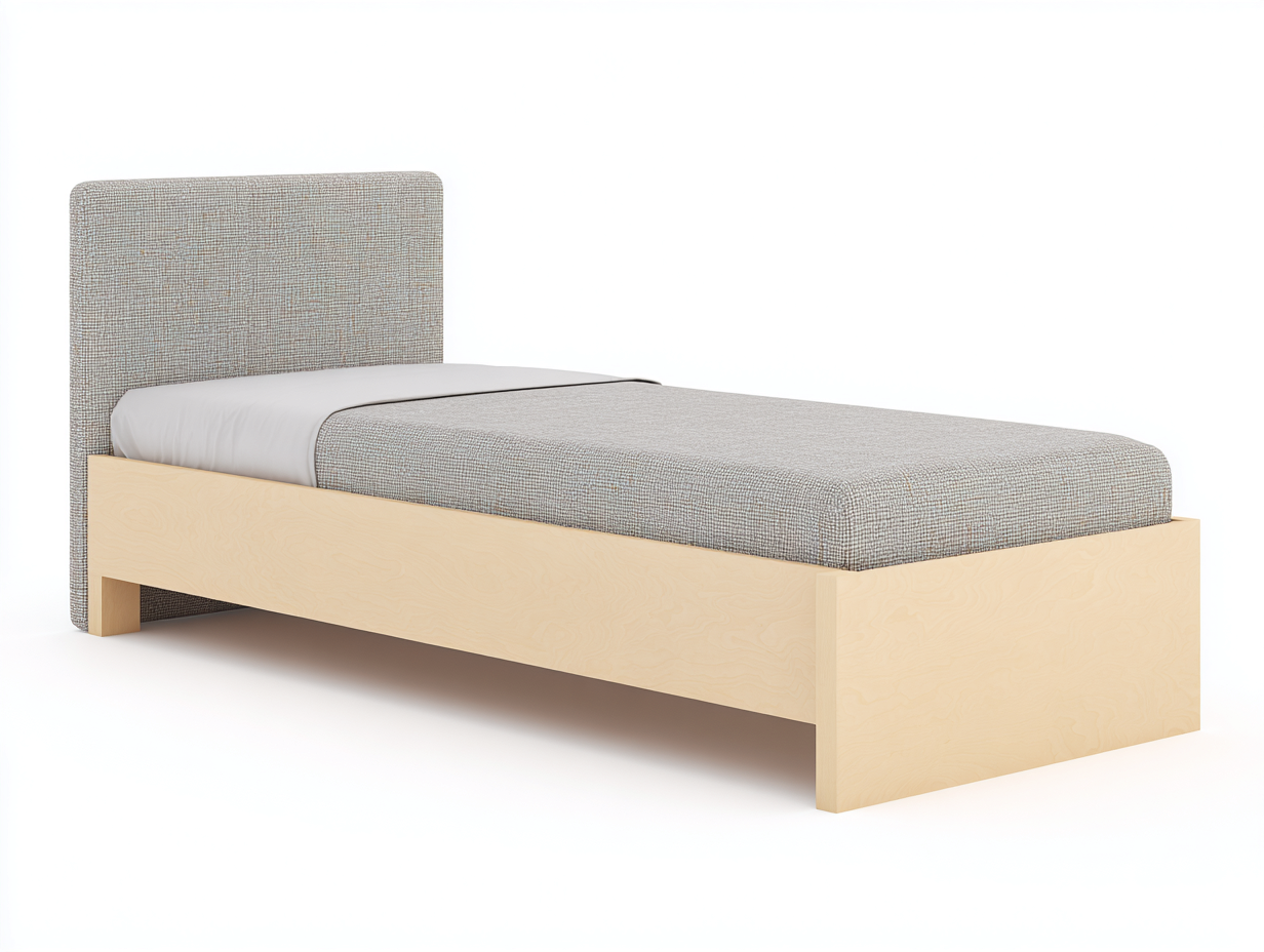 Single Beds solid wood fabric upholstered 200x100x90 cm - natural-grey - modern bedroom furniture